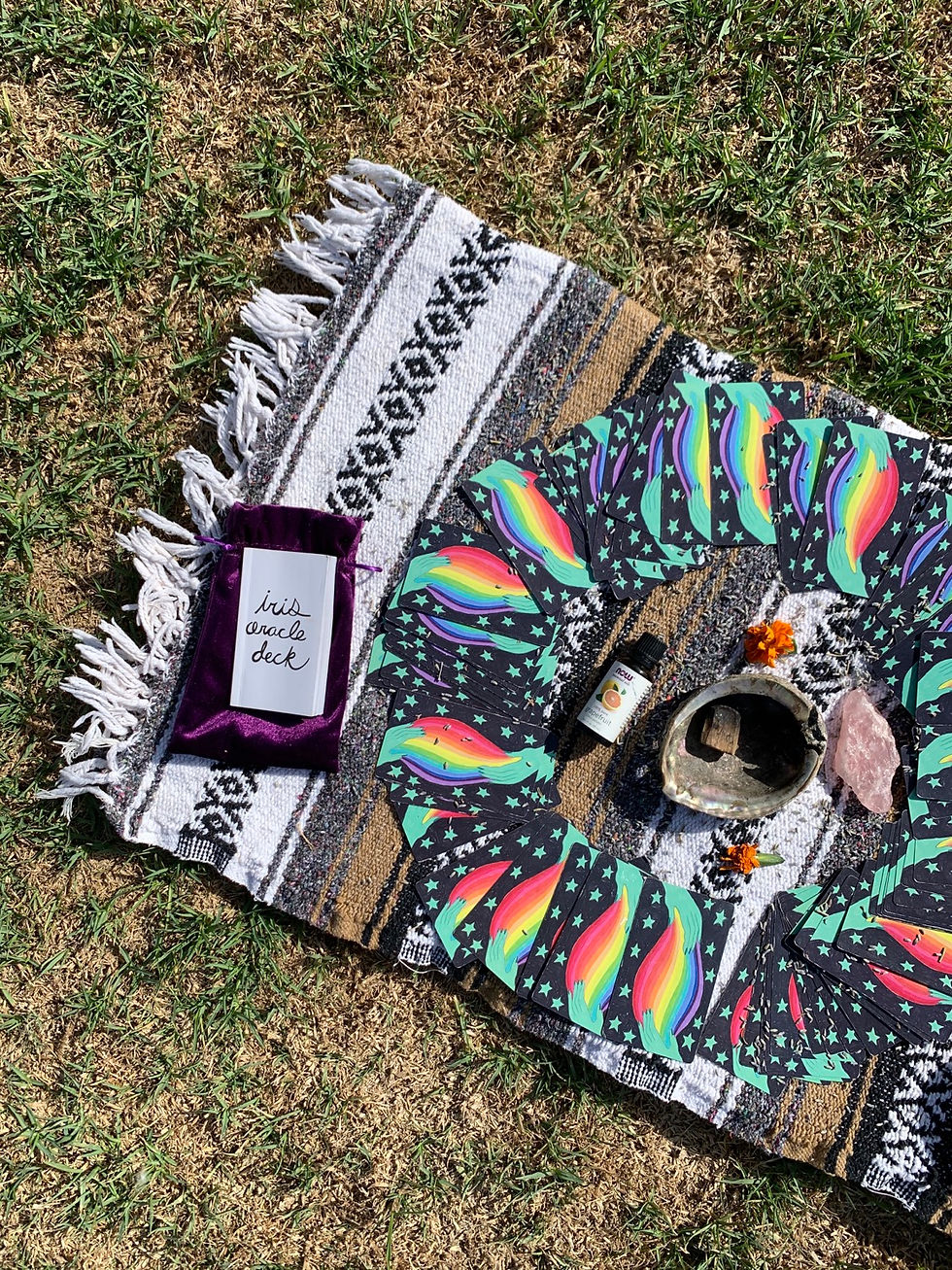 I took a hit de medicina as we waited for everyone to get settled. Before starting our flow, we were invited to take a card of the Iris Oracle Deck from the altar in the center and I got the "Stay Back" card. I sat there in shock... It was a confirmation from spirit.